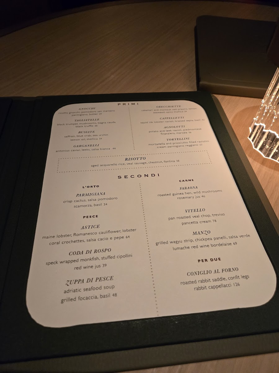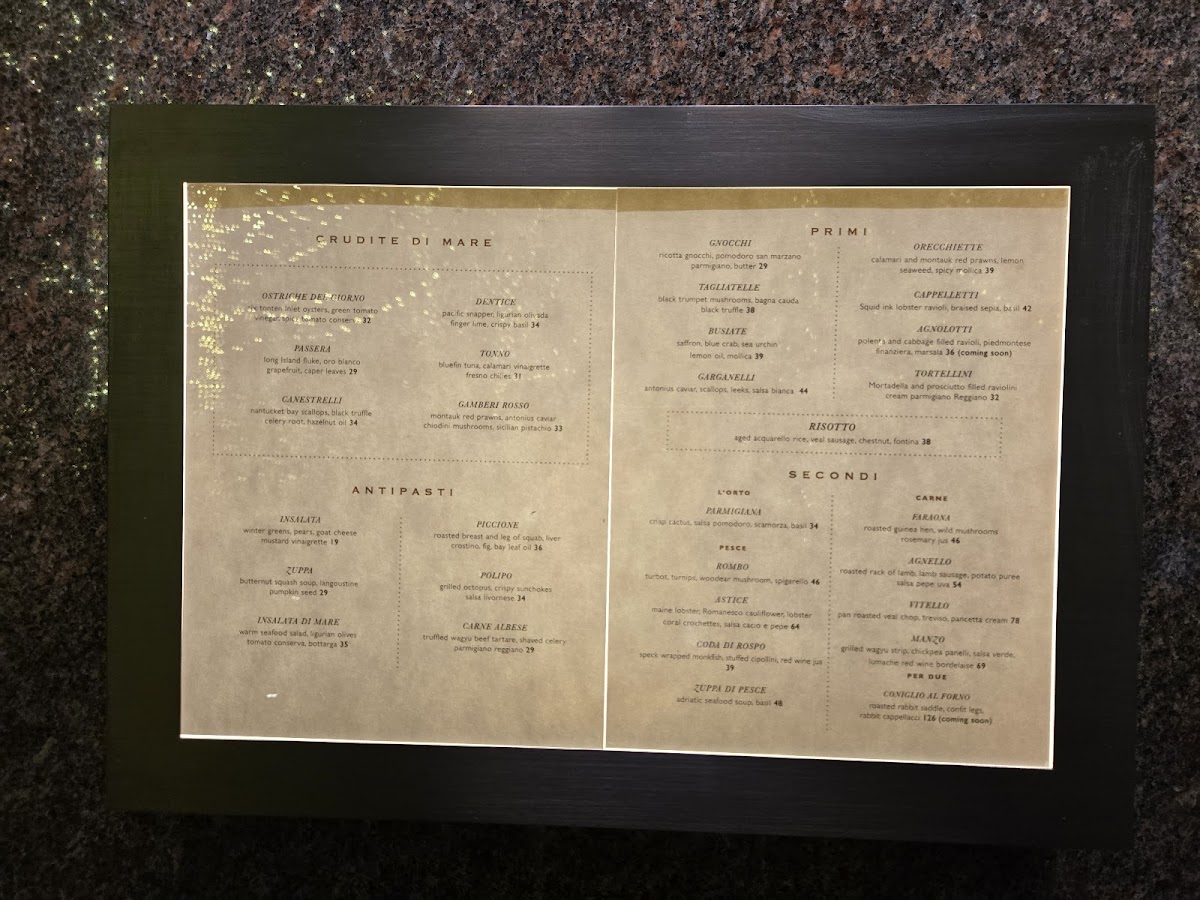 The menu boasts a lineup of seasonal dishes crafted from the freshest ingredients. Highlights include the succulent shrimp gamberi rossi crudo, perfectly cooked pastas, and the divine soft-shell crab, each presenting flavors that transcend the ordinary. Desserts, like the Torta di Mascarpone and Delizie al Limone, are a must-try, showcasing the pastry team’s creativity and skill.